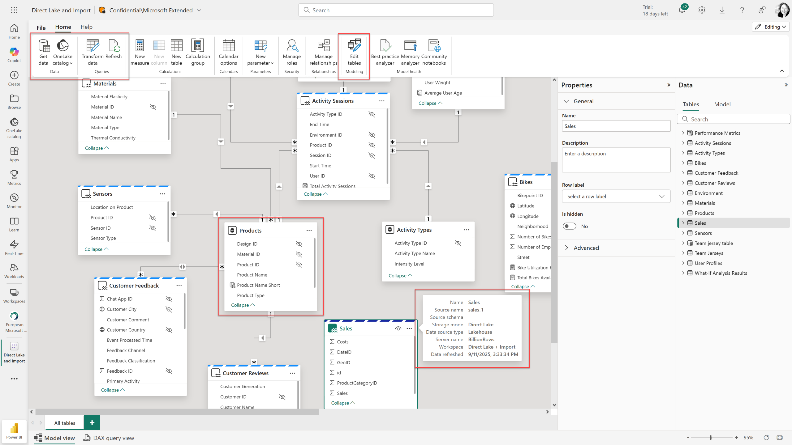 Semantic Modeling: To create a composite model, users can easily add tables from Direct Lake or import tables within Power BI web or Desktop experiences.